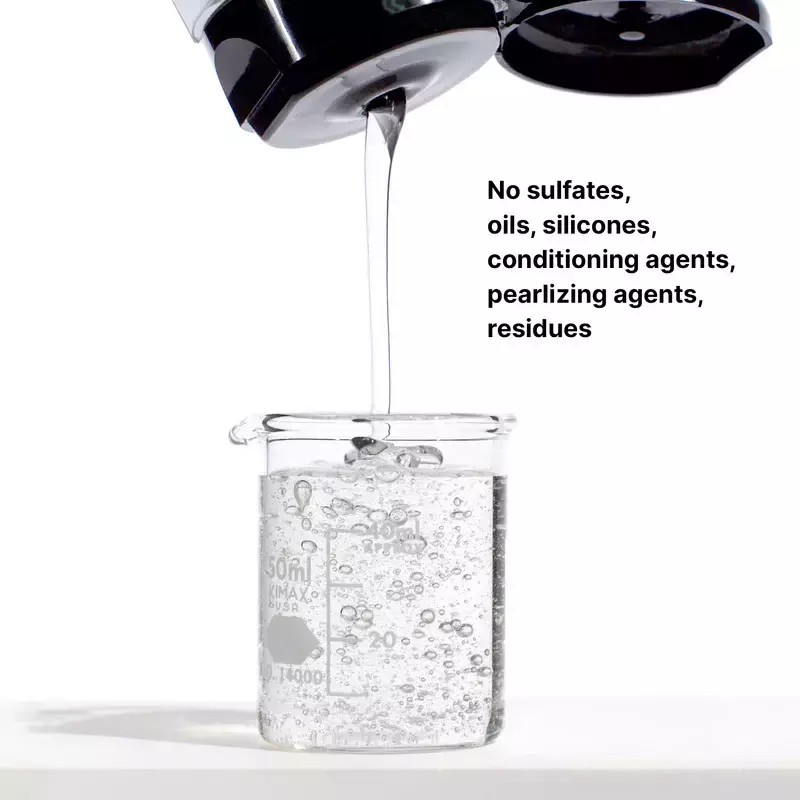 Diferente dos shampoos convencionais, todos os ingredientes deste shampoo são completamente removidos com o enxágue, evitando o acúmulo de silicones, espessantes, condicionadores ou agentes anti-frizz que podem deixar o cabelo opaco, causar irritações ou até queda capilar.