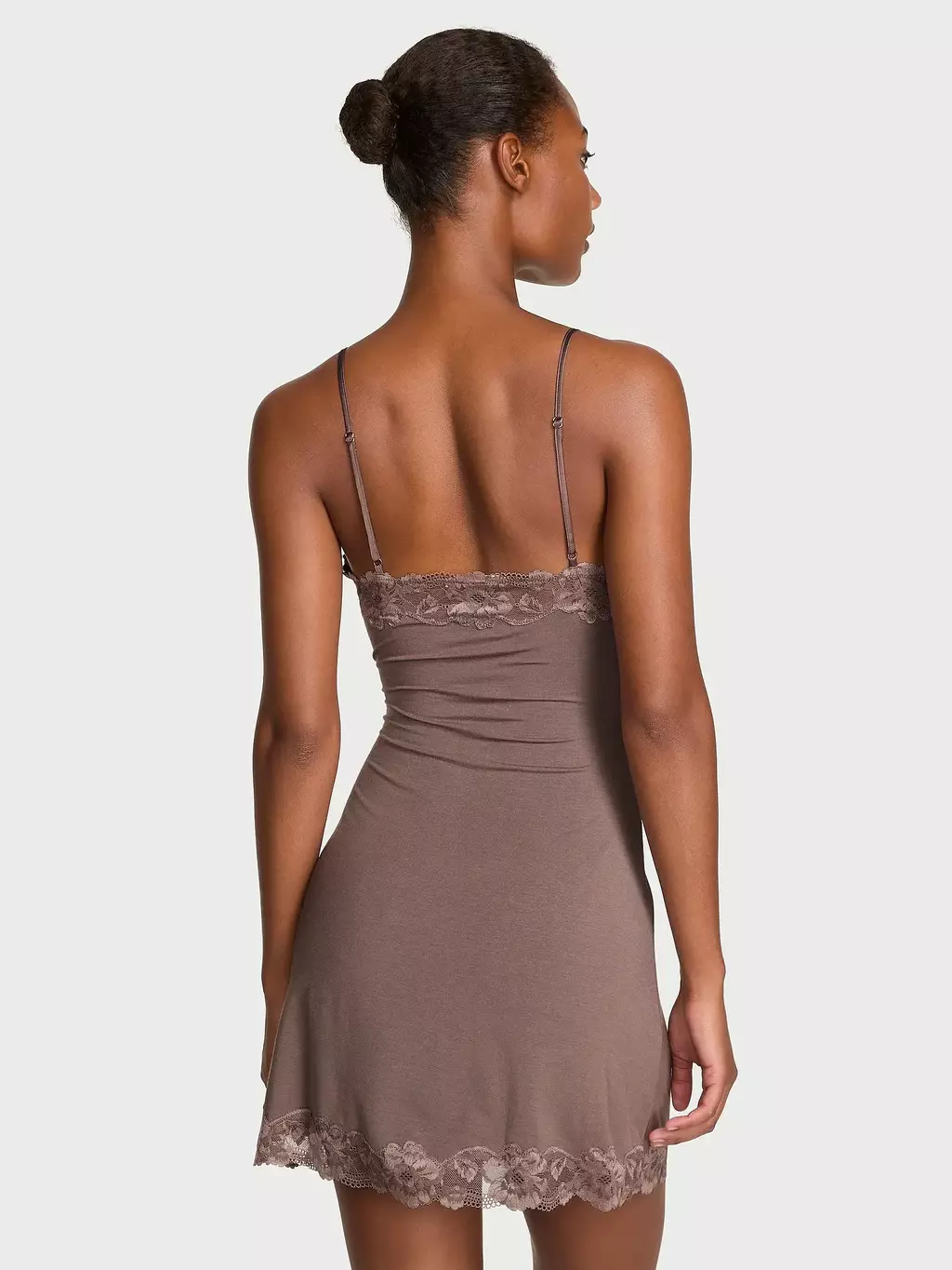 Victoria's Secret - Vestido Curto com Acabamento em Renda Modal Macio - Marrom